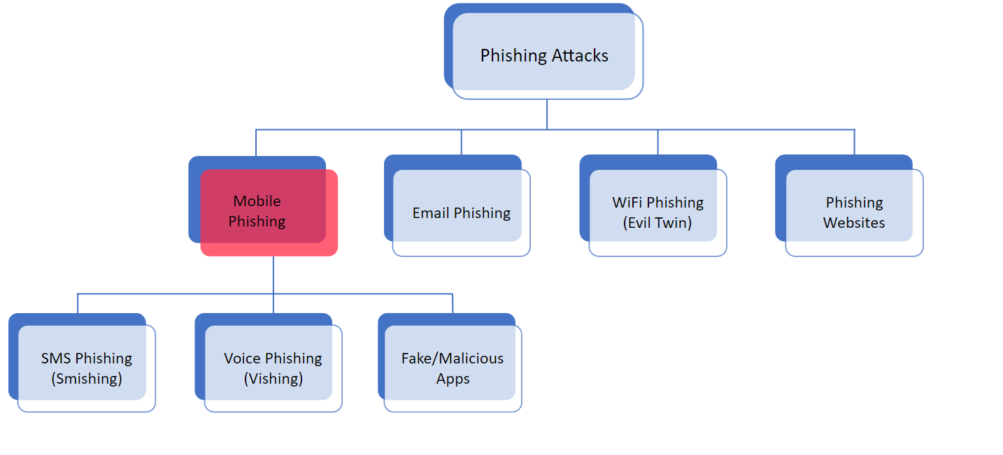 Mobile phishing refers to phishing attacks that are crafted specifically for mobile users. These attacks exploit mobile-specific traits, such as truncated URLs, multitasking behavior, and reduced screen space, which limit a user’s ability to verify the legitimacy of a website or link. Attack vectors include smishing (phishing via SMS), fraudulent apps, and deceptive websites designed to steal credentials, leading to financial loss, identity theft, or even full account compromise.